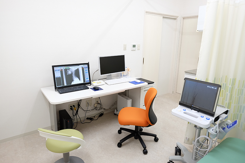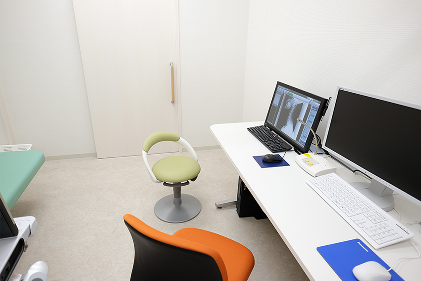 レントゲン検査では分かりにくい筋肉、腱、靭帯などの状態もしっかりと映し出すことができる、軟部組織の描出に優れた検査機器です。